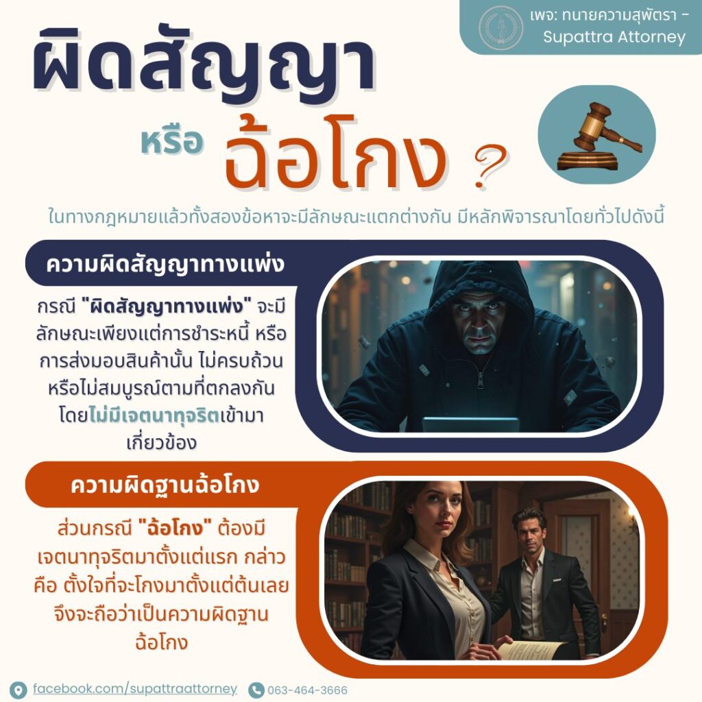 | ประเด็น | ผิดสัญญา | ฉ้อโกง |